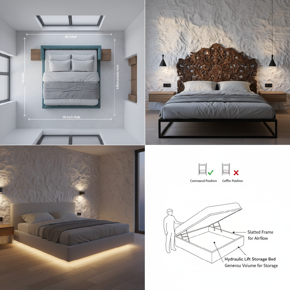 The Feng Shui Rule for Storage: If you must store items under the bed, they should be soft, sleep-related items (linens, blankets, pillows). Avoid storing work materials, shoes, or emotional mementos, as these can bring "active" or "stagnant" energy into your rest.